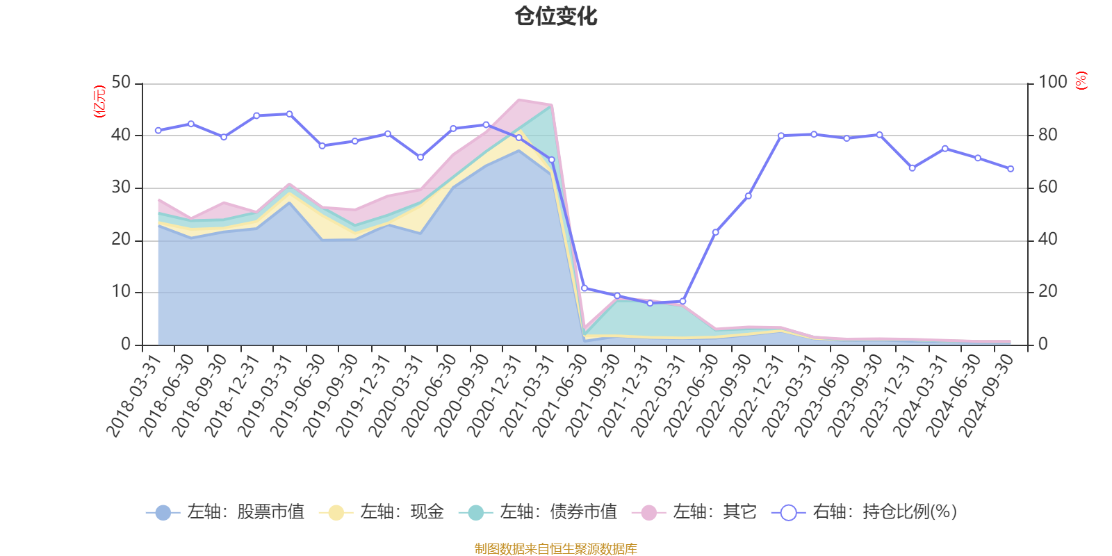 据定期报告数据统计,近三年平均股票仓位为61.2%,同类平均为79.68%。2019年一季度末基金达到88.3%的最高仓位,2021年末最低,为16%。