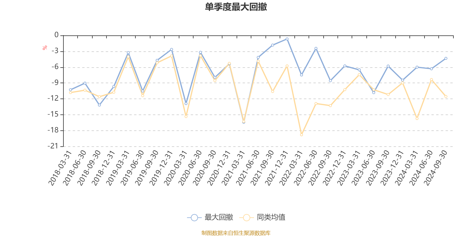 截至11月1日,基金近三年最大回撤为23.52%,同类可比基金排名859/904。其中,单季度最大回撤出现在2021年一季度,为16.42%。
