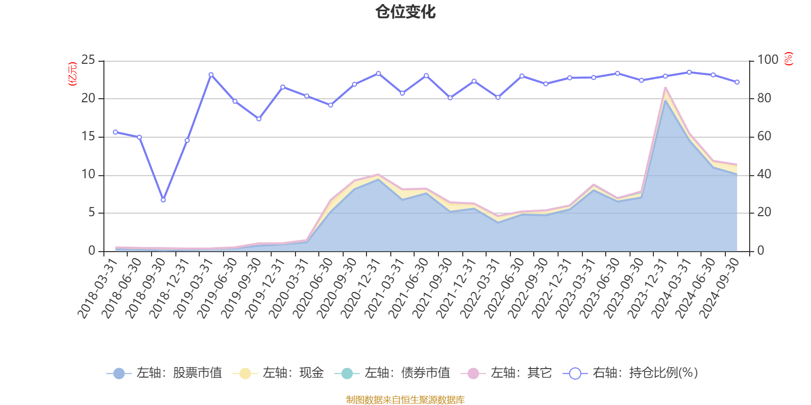 据定期报告数据统计,近三年平均股票仓位为90.22%,同类平均为79.69%。2024年一季度末基金达到93.98%的最高仓位,2018年三季度末最低,为26.99%。