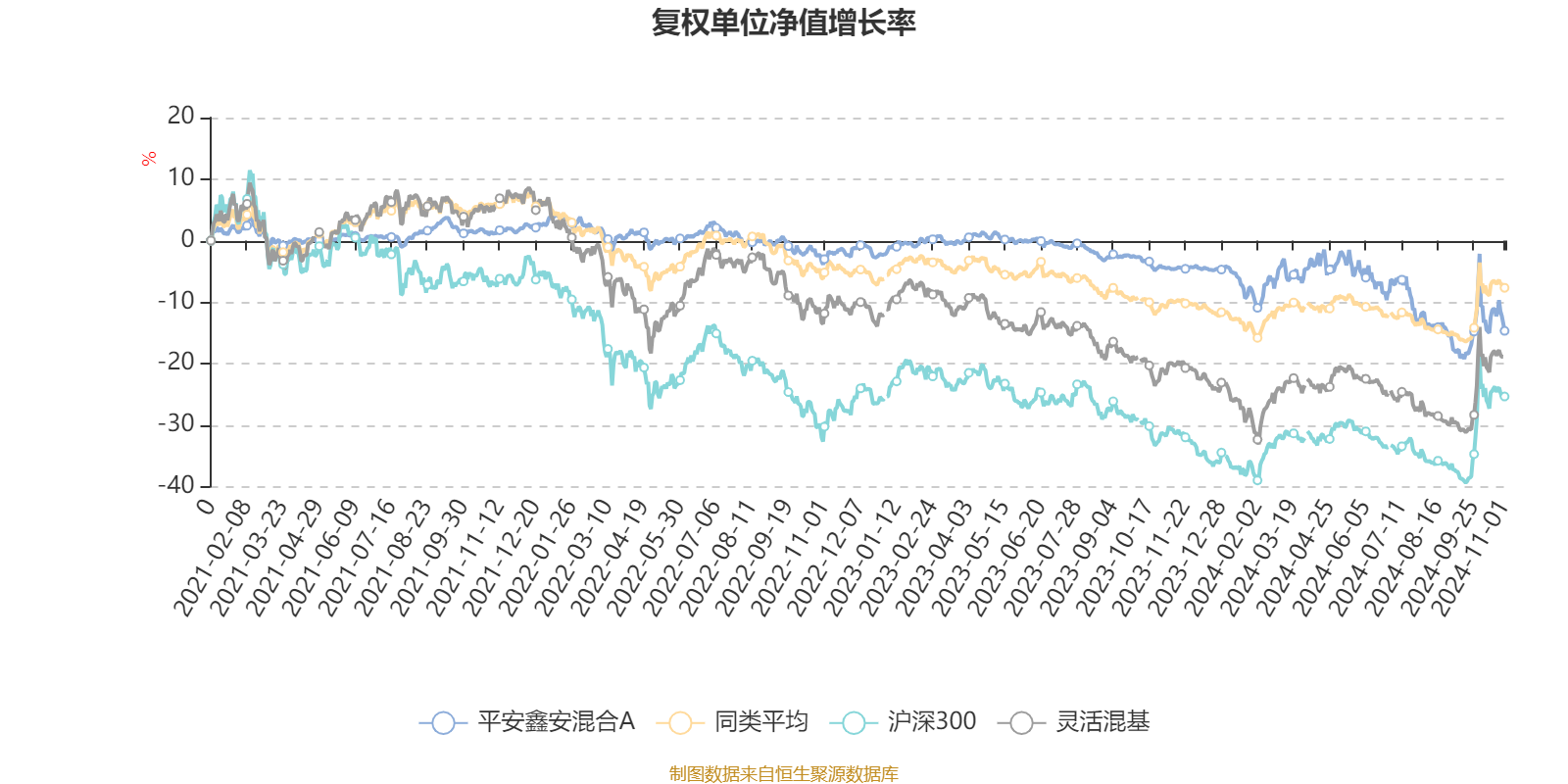 截至11月1日,平安鑫安混合A近三个月复权单位净值增长率为-3.33%,位于同类可比基金105/108;近半年复权单位净值增长率为-10.24%,位于同类可比基金106/108;近一年复权单位净值增长率为-10.78%,位于同类可比基金101/108;近三年复权单位净值增长率为-15.93%,位于同类可比基金75/107。