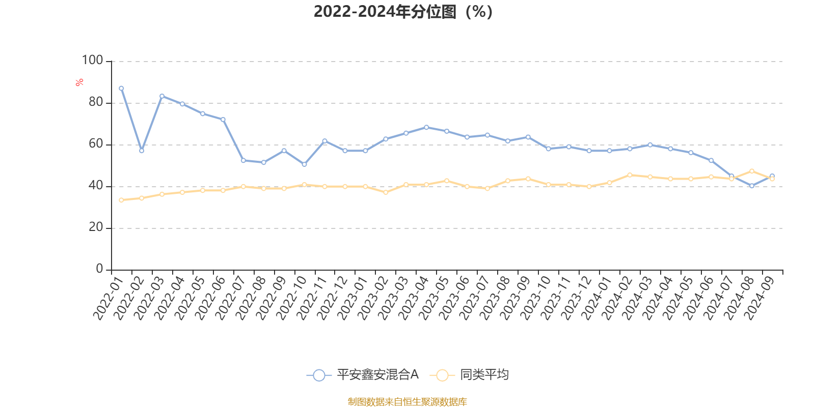 通过所选区间该基金净值增长率分位图,可以观察该基金与同类基金业绩比较情况。图为坐标原点到区间内某时点的净值增长率在同类基金中的分位数。