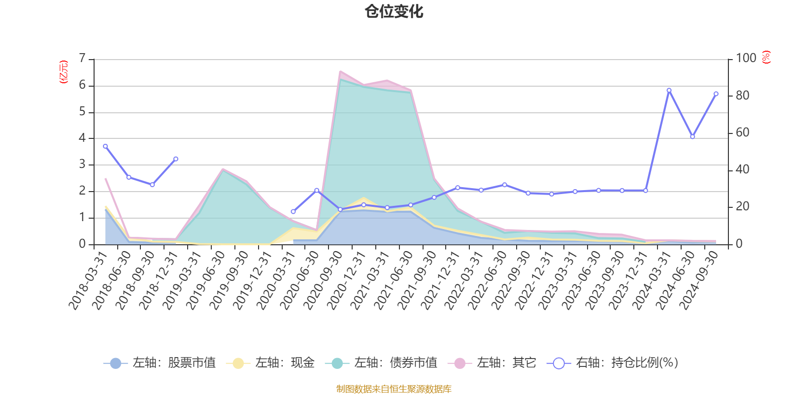 据定期报告数据统计,近三年平均股票仓位为40.49%,同类平均为40.52%。2024年一季度末基金达到83.18%的最高仓位,2020年一季度末最低,为17.79%。