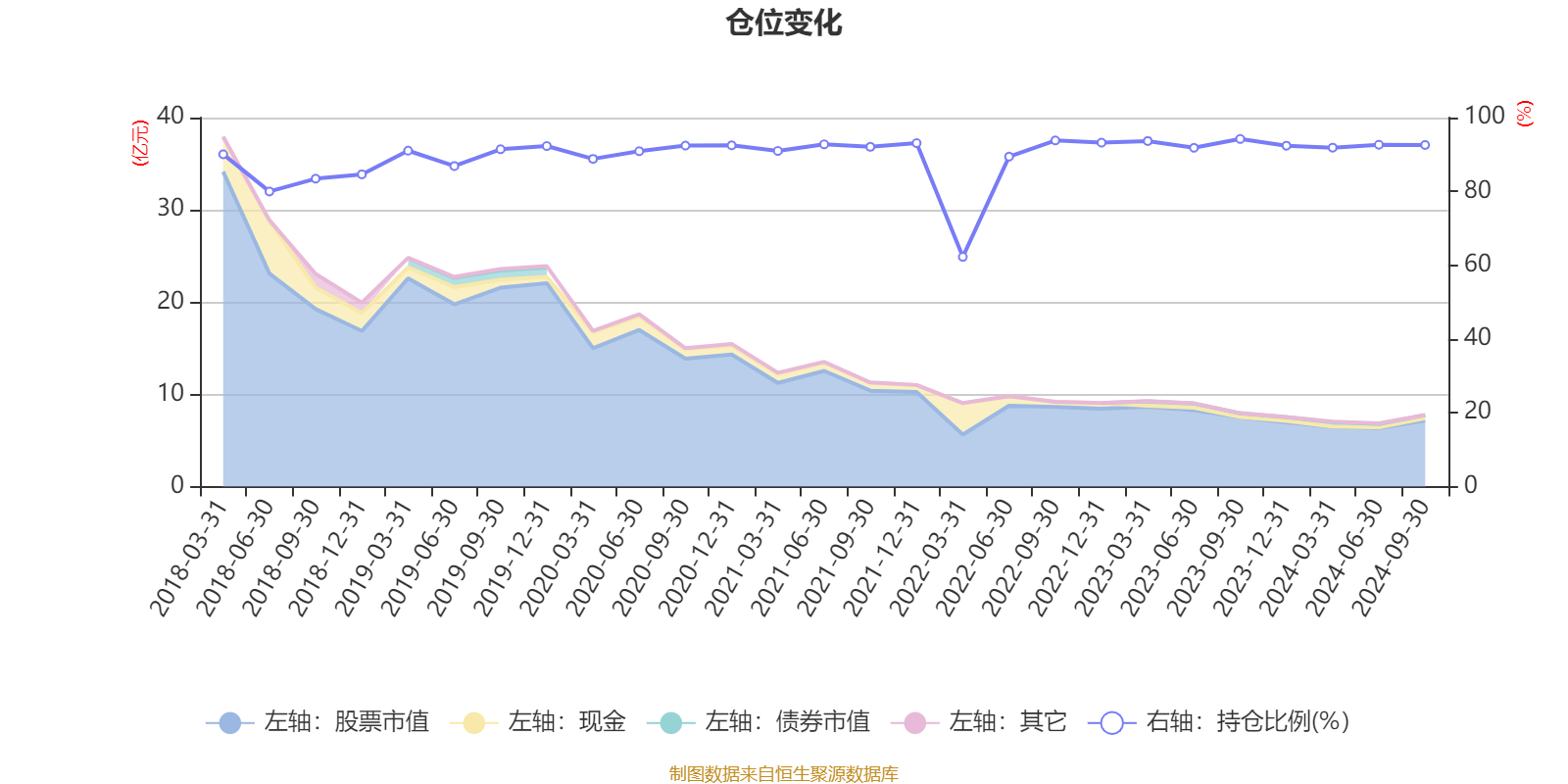 据定期报告数据统计,近三年平均股票仓位为90.08%,同类平均为85.68%。2023年三季度末基金达到94.22%的最高仓位,2022年一季度末最低,为62.26%。