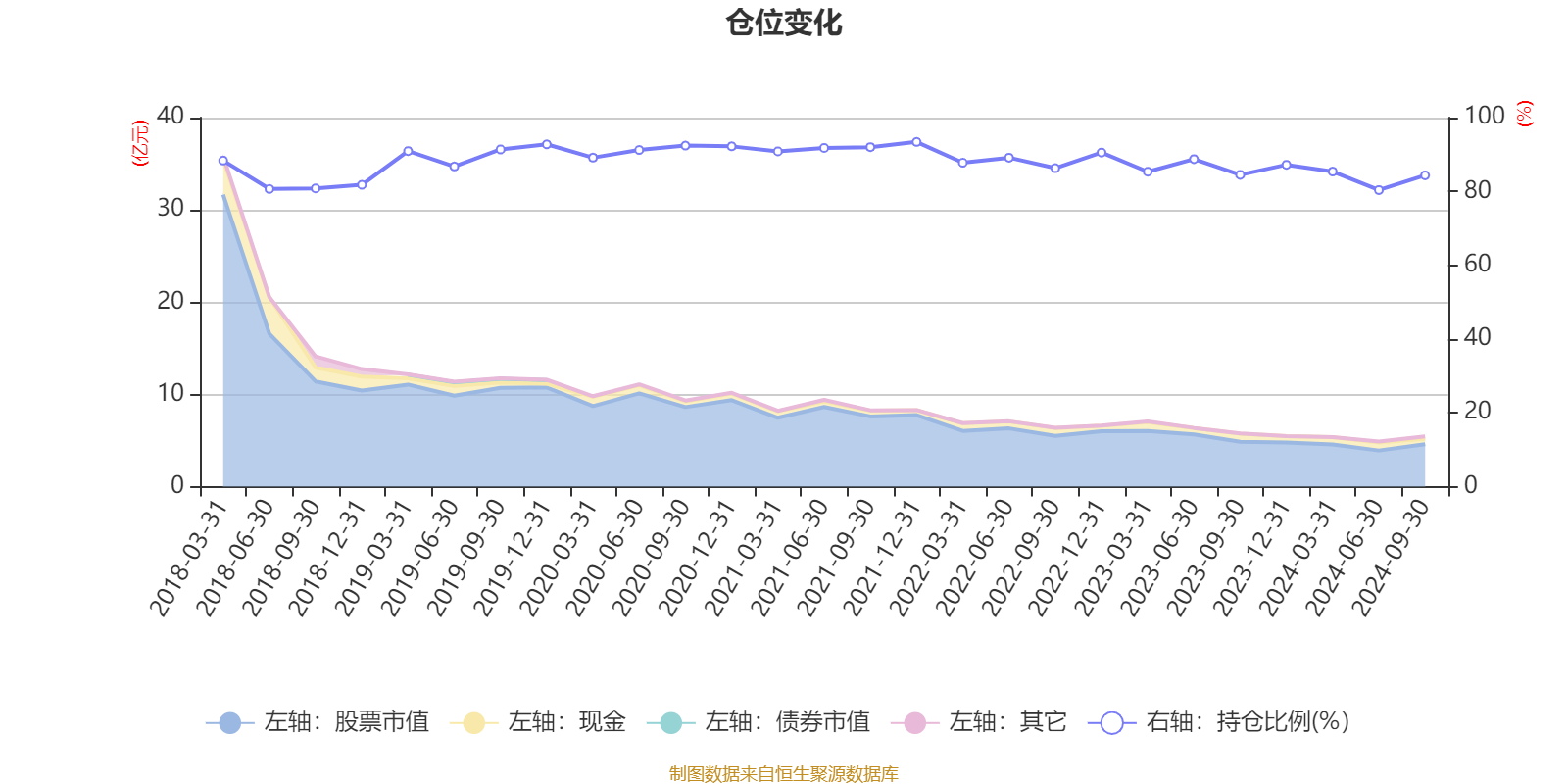 据定期报告数据统计,近三年平均股票仓位为86.92%,同类平均为84.87%。2021年末基金达到93.4%的最高仓位,2024年上半年末最低,为80.37%。