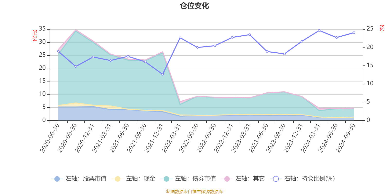 据定期报告数据统计,近三年平均股票仓位为21%,同类平均为18.66%。2024年一季度末基金达到24.63%的最高仓位,2021年末最低,为12.61%。