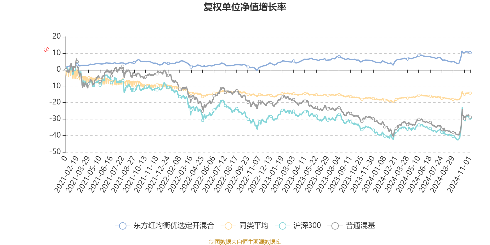 截至11月1日,东方红均衡优选定开混合近三个月复权单位净值增长率为4.33%,位于同类可比基金162/670;近半年复权单位净值增长率为2.27%,位于同类可比基金280/670;近一年复权单位净值增长率为4.73%,位于同类可比基金246/658;近三年复权单位净值增长率为5.48%,位于同类可比基金120/480。