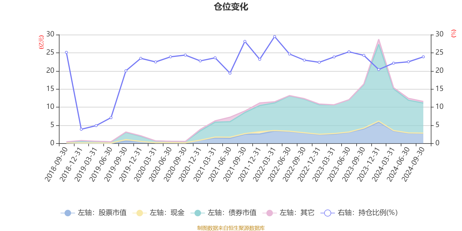 据定期报告数据统计,近三年平均股票仓位为23.75%,同类平均为18.66%。2022年一季度末基金达到29.48%的最高仓位,2018年末最低,为3.89%。