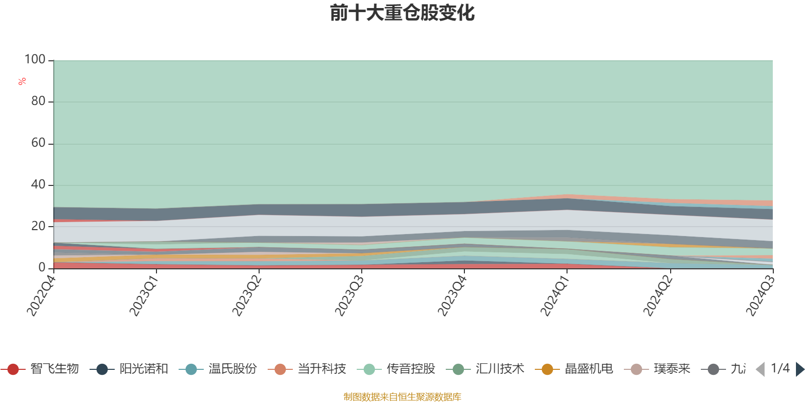 截至2024年三季度末,基金十大重仓股分别是宁德时代、东方财富、中际旭创、迈瑞医疗、阳光电源、温氏股份、新易盛、天孚通信、协创数据、伟明环保。