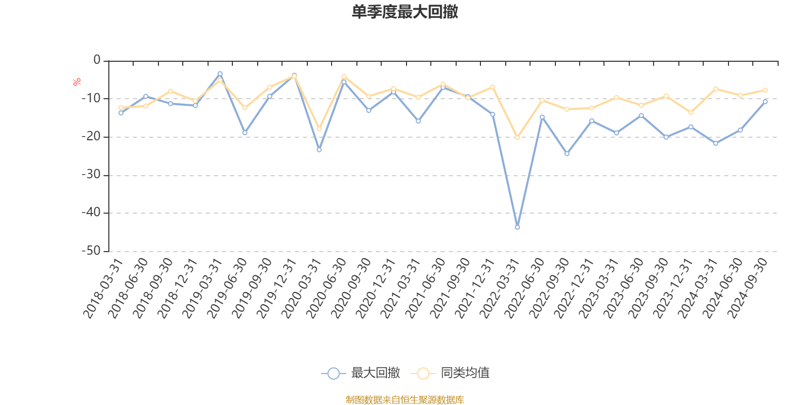 截至11月4日,基金近三年最大回撤为66.75%,同类可比基金排名2/17。其中,单季度最大回撤出现在2022年一季度,为43.67%。