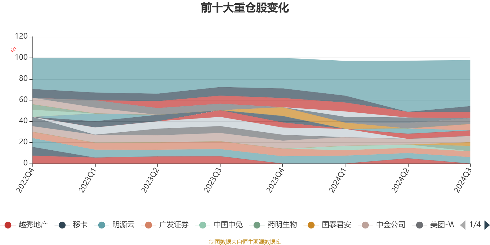 该基金持股集中度较高。截至2024年三季度末,基金十大重仓股分别是龙湖集团、明源云、中国银河、中金公司、广发证券、绿城中国、东方证券、中国海外宏洋集团、药明生物、国泰君安。