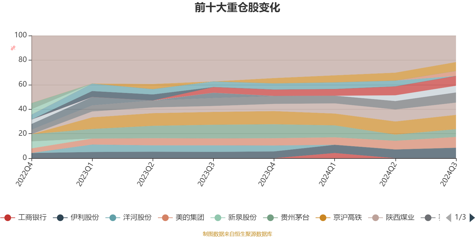截至2024年三季度末,基金十大重仓股分别是京沪高铁、陕西煤业、美的集团、伊利股份、赛轮轮胎、长江电力、招商公路、贵州茅台、扬农化工、五粮液。