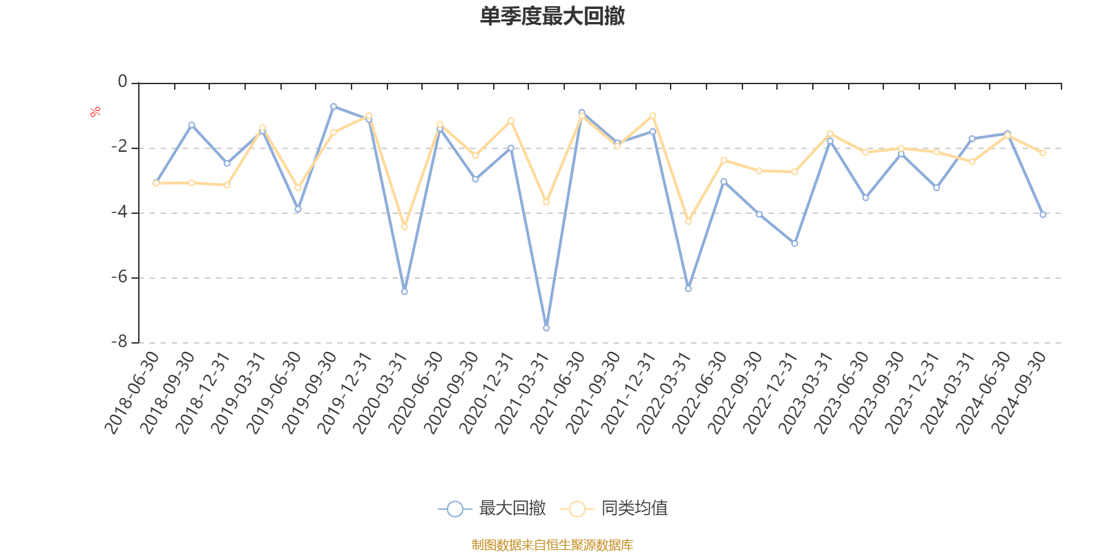 截至11月4日,基金近三年最大回撤为8.47%,同类可比基金排名56/153。其中,单季度最大回撤出现在2021年一季度,为7.55%。