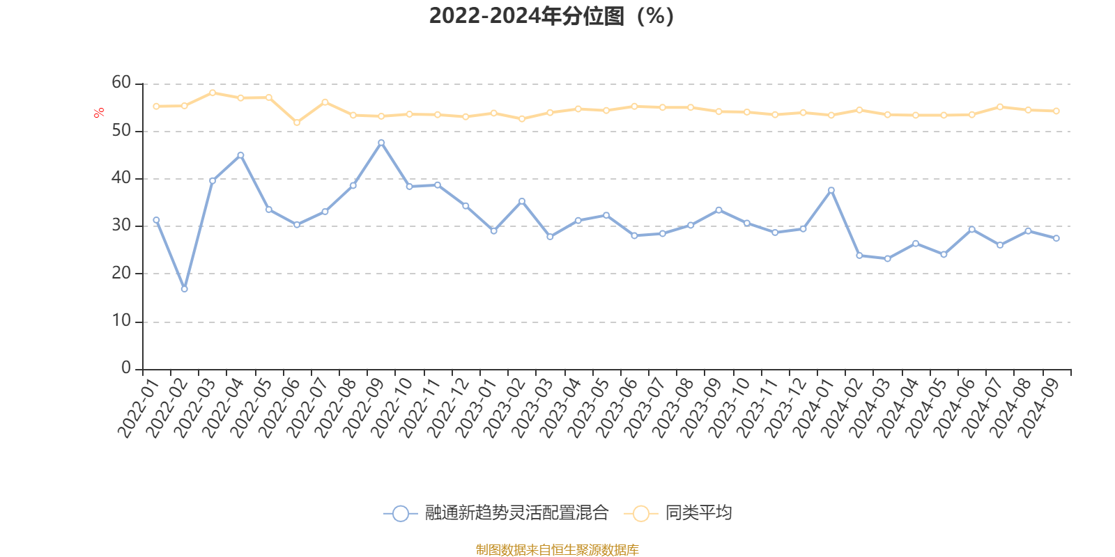 通过所选区间该基金净值增长率分位图,可以观察该基金与同类基金业绩比较情况。图为坐标原点到区间内某时点的净值增长率在同类基金中的分位数。