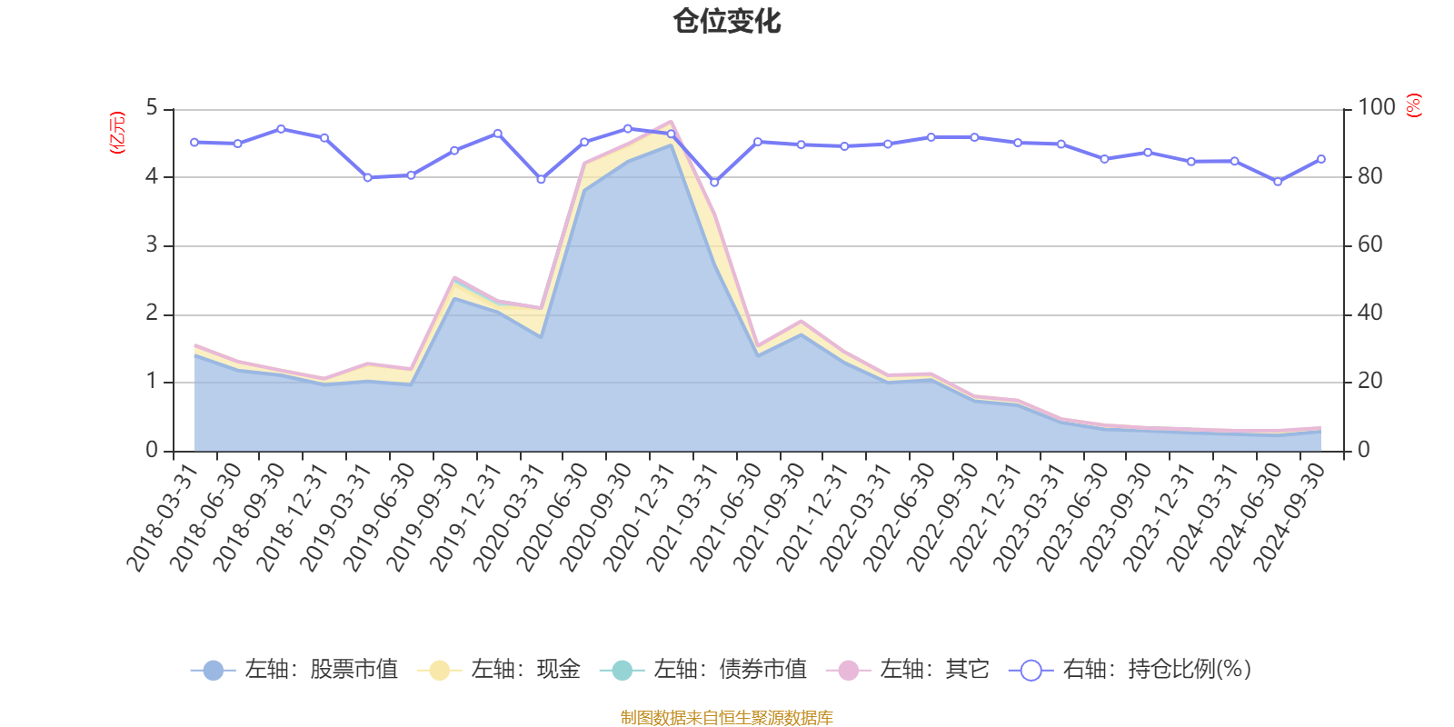 据定期报告数据统计,近三年平均股票仓位为87.39%,同类平均为79.77%。2020年三季度末基金达到94.27%的最高仓位,2021年一季度末最低,为78.57%。