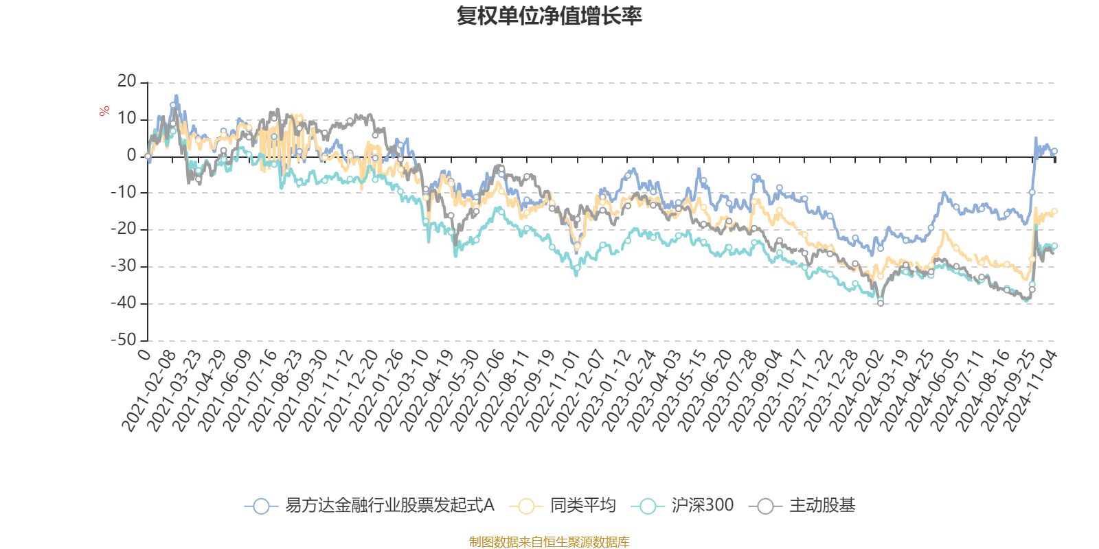 截至11月4日,易方达金融行业股票发起式A近三个月复权单位净值增长率为19.59%,位于同类可比基金2/6;近半年复权单位净值增长率为23.03%,位于同类可比基金1/6;近一年复权单位净值增长率为18.67%,位于同类可比基金2/6;近三年复权单位净值增长率为1.65%,位于同类可比基金2/5。