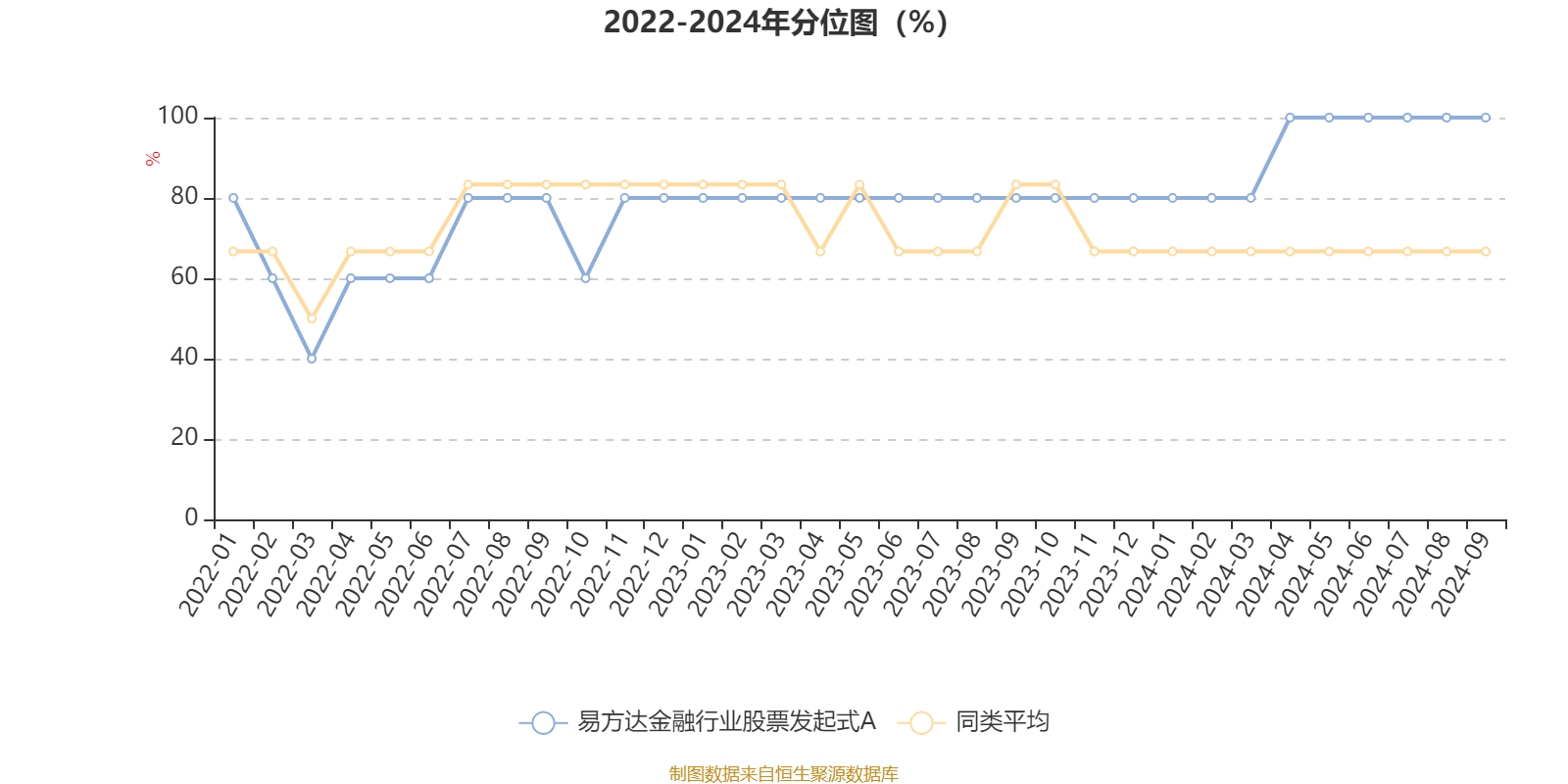 通过所选区间该基金净值增长率分位图,可以观察该基金与同类基金业绩比较情况。图为坐标原点到区间内某时点的净值增长率在同类基金中的分位数。
