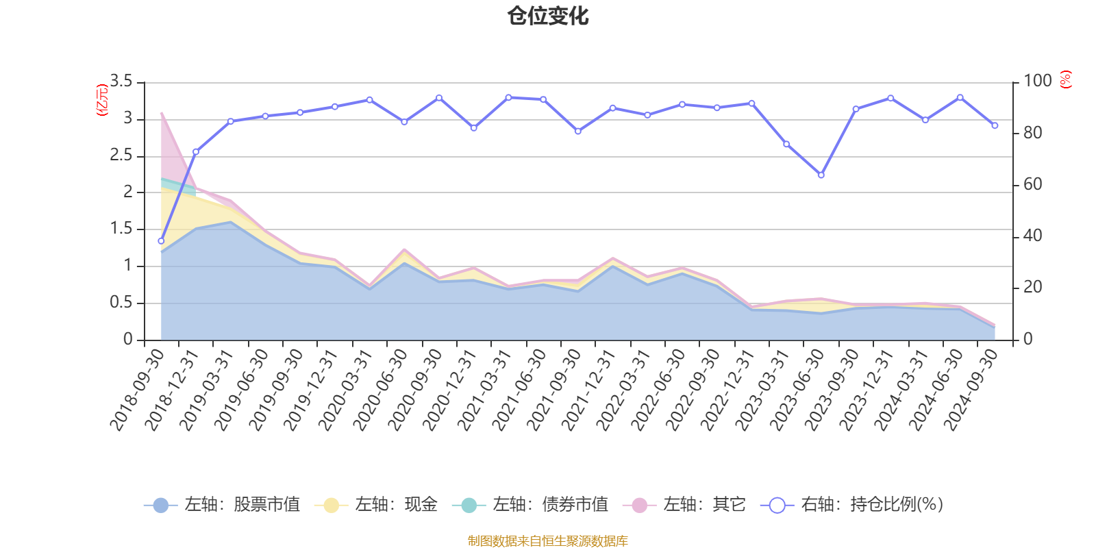 据定期报告数据统计,近三年平均股票仓位为86.39%,同类平均为79.69%。2024年上半年末基金达到94.09%的最高仓位,2018年三季度末最低,为38.44%。