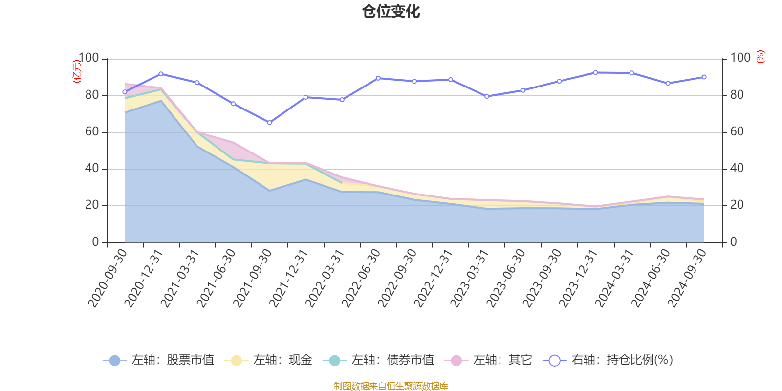 据定期报告数据统计,近三年平均股票仓位为86.15%,同类平均为79.69%。2023年末基金达到92.44%的最高仓位,2021年三季度末最低,为65.26%。