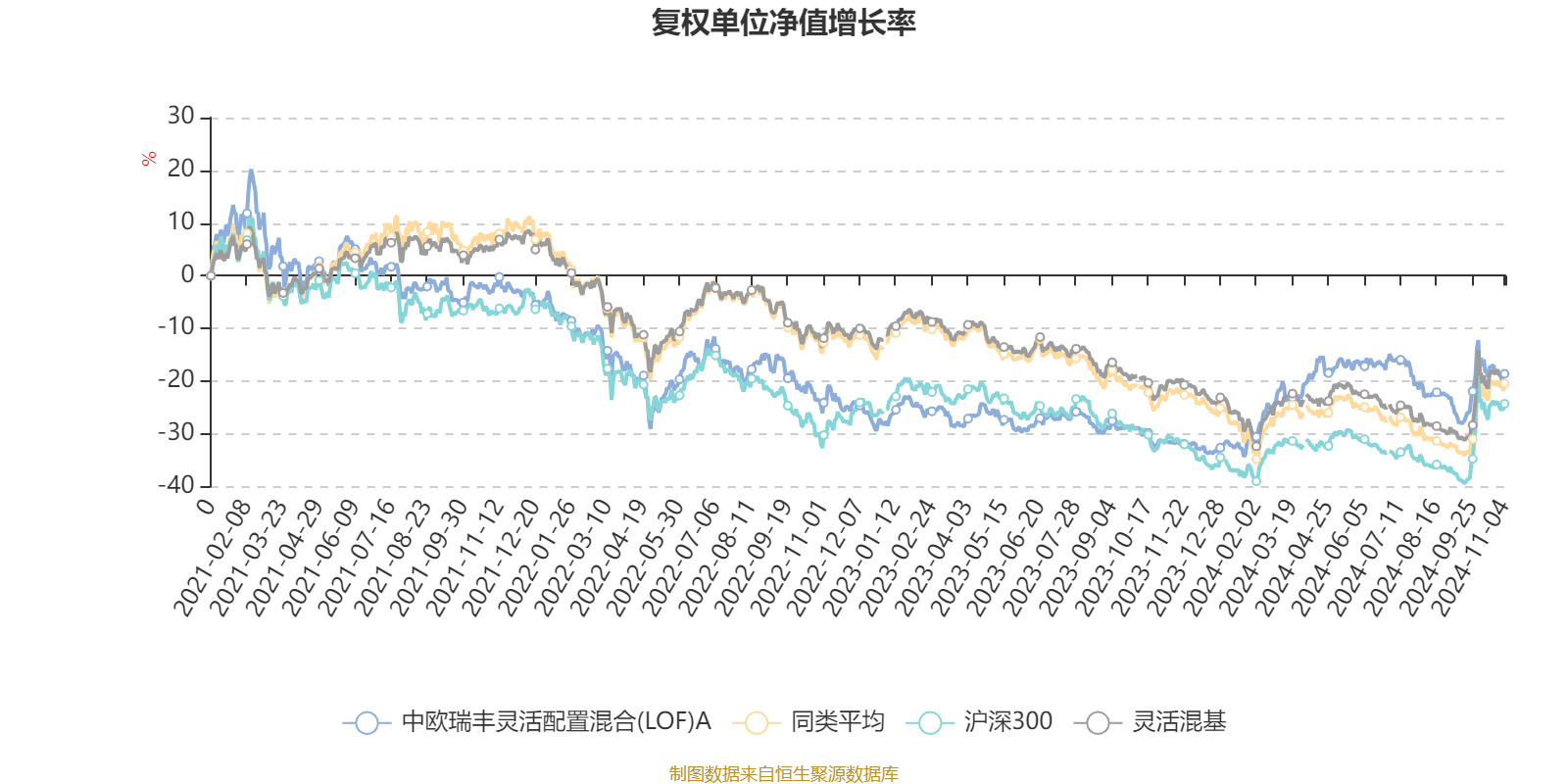 截至11月4日,中欧瑞丰灵活配置混合(LOF)A近三个月复权单位净值增长率为3.06%,位于同类可比基金858/920;近半年复权单位净值增长率为-0.57%,位于同类可比基金722/920;近一年复权单位净值增长率为18.34%,位于同类可比基金52/920;近三年复权单位净值增长率为-16.34%,位于同类可比基金269/892。