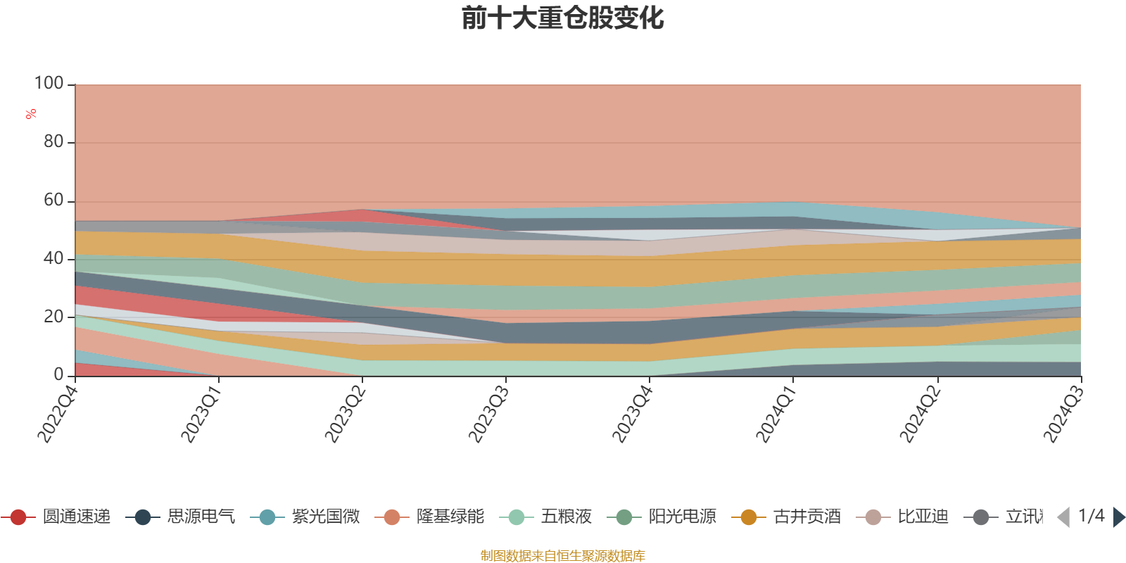 该基金持股集中度较高。截至2024年三季度末,基金十大重仓股分别是贵州茅台、泸州老窖、五粮液、阳光电源、思源电气、迎驾贡酒、古井贡酒、巨星科技、燕京啤酒、立讯精密。