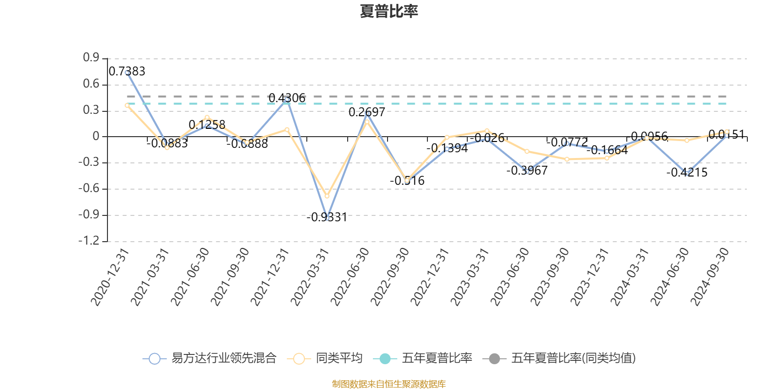 截至9月30日,基金近三年夏普比率为-0.2866,位于同类可比基金117/183。