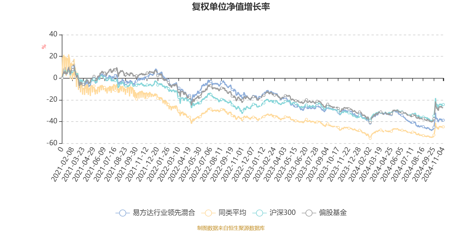截至11月4日,易方达行业领先混合近三个月复权单位净值增长率为10.85%,位于同类可比基金156/211;近半年复权单位净值增长率为-10.41%,位于同类可比基金211/211;近一年复权单位净值增长率为-12.70%,位于同类可比基金202/211;近三年复权单位净值增长率为-39.34%,位于同类可比基金147/182。