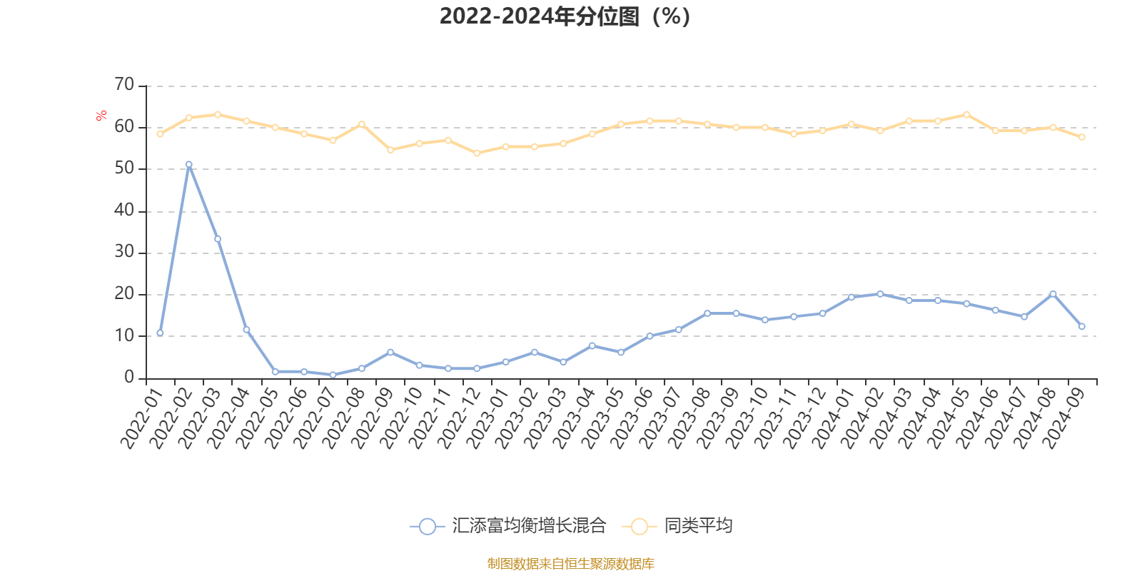 通过所选区间该基金净值增长率分位图,可以观察该基金与同类基金业绩比较情况。图为坐标原点到区间内某时点的净值增长率在同类基金中的分位数。