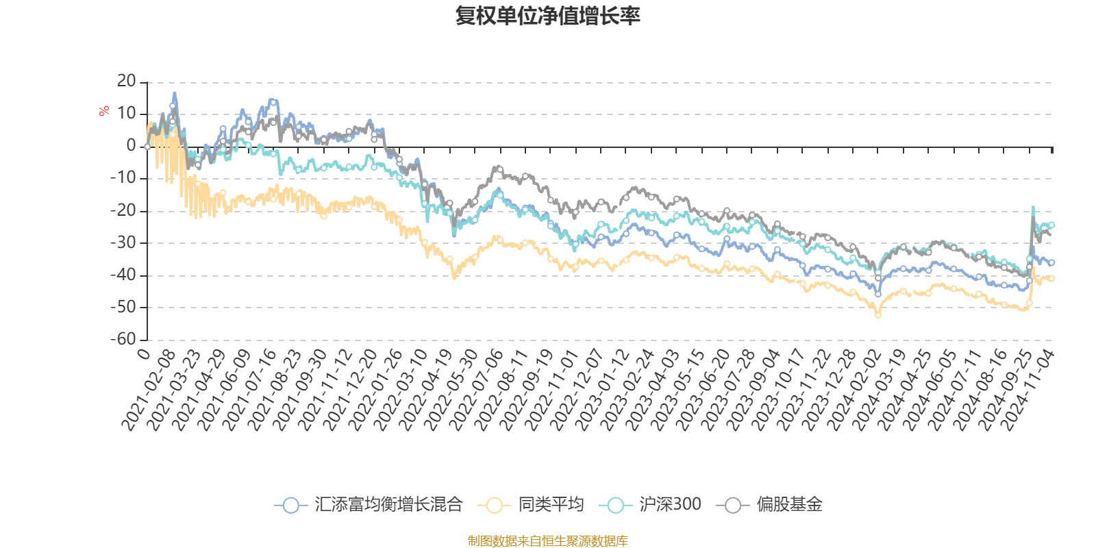 截至11月4日,汇添富均衡增长混合近三个月复权单位净值增长率为11.52%,位于同类可比基金85/135;近半年复权单位净值增长率为1.72%,位于同类可比基金99/135;近一年复权单位净值增长率为2.42%,位于同类可比基金84/135;近三年复权单位净值增长率为-37.66%,位于同类可比基金103/124。