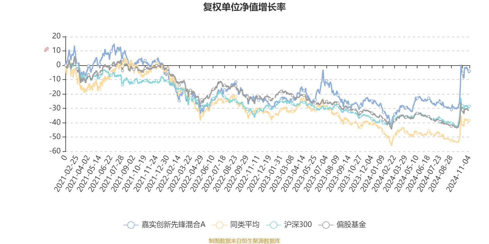 截至11月4日,嘉实创新先锋混合A近三个月复权单位净值增长率为33.04%,位于同类可比基金11/202;近半年复权单位净值增长率为28.80%,位于同类可比基金13/202;近一年复权单位净值增长率为31.77%,位于同类可比基金13/181;近三年复权单位净值增长率为-3.25%,位于同类可比基金18/124。