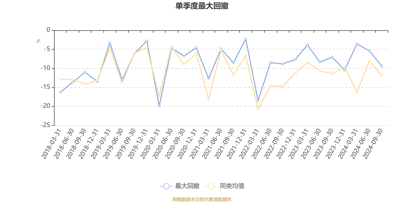 截至11月4日,基金近三年最大回撤为20.86%,同类可比基金排名150/150。其中,单季度最大回撤出现在2020年一季度,为19.9%。