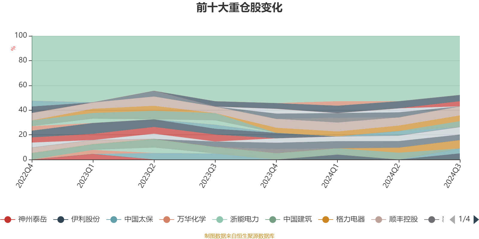 截至2024年三季度末,基金十大重仓股分别是美的集团、格力电器、江苏银行、招商银行、伊利股份、中国平安、扬农化工、华鲁恒升、海尔智家、中国太保。