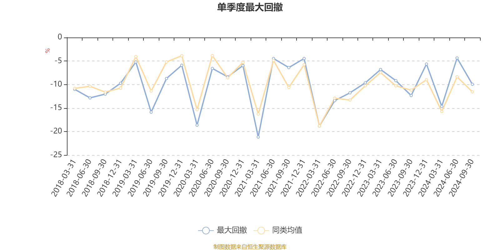 通过所选区间该基金净值增长率分位图,可以观察该基金与同类基金业绩比较情况。图为坐标原点到区间内某时点的净值增长率在同类基金中的分位数。