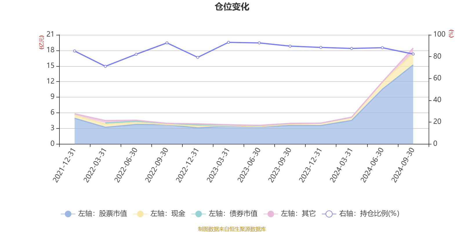 据定期报告数据统计,近三年平均股票仓位为86.03%,同类平均为88.66%。2023年一季度末基金达到93.1%的最高仓位,2022年一季度末最低,为71.16%。
