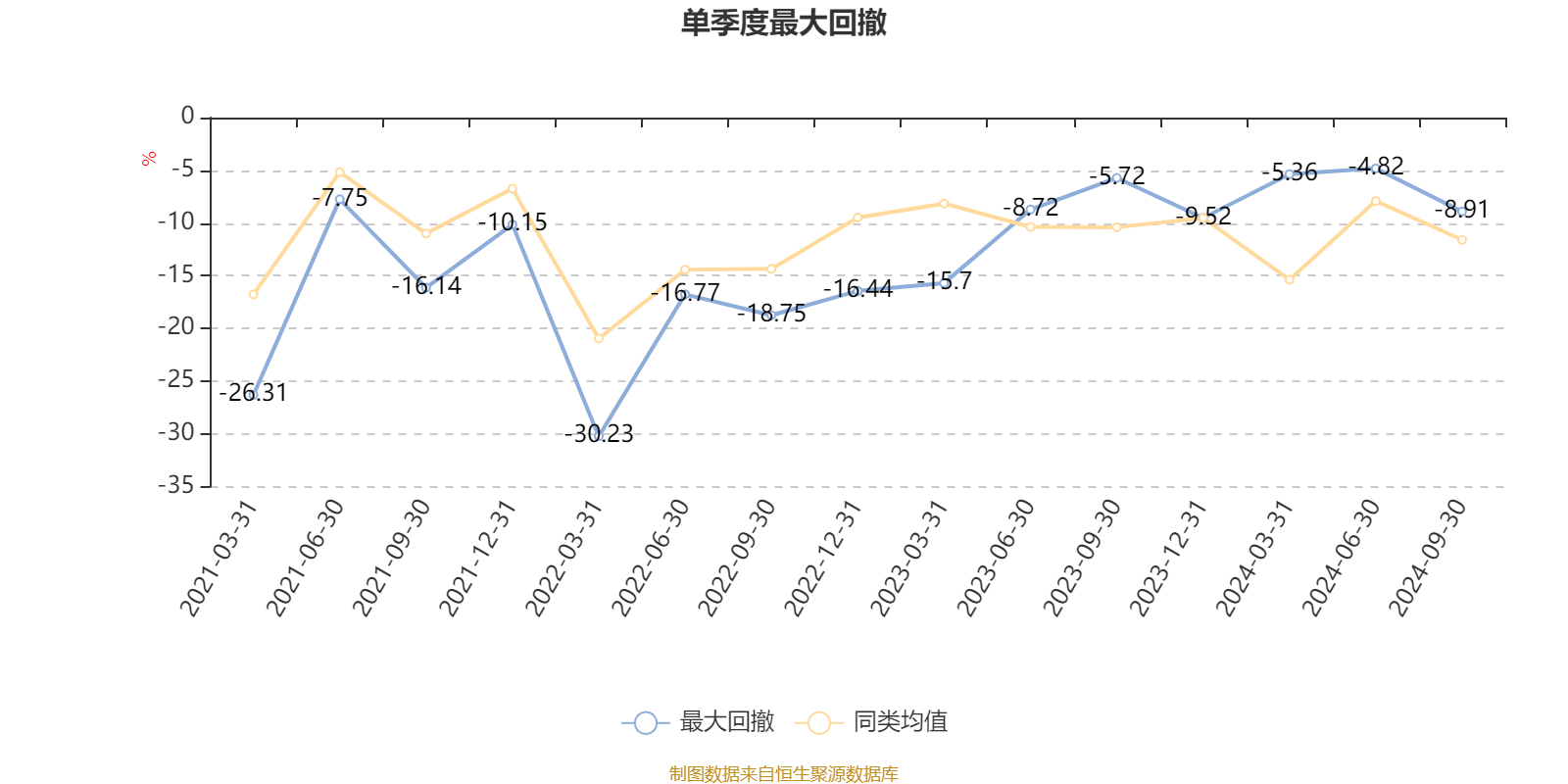 截至11月4日,基金近三年最大回撤为46.51%,同类可比基金排名28/72。其中,单季度最大回撤出现在2022年一季度,为30.23%。