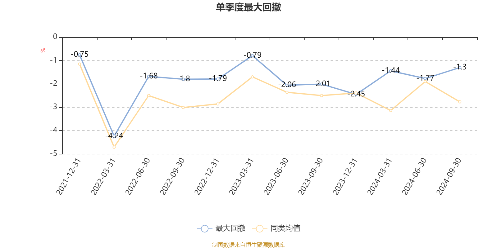截至11月4日,基金近三年最大回撤为5.12%,同类可比基金排名368/461。其中,单季度最大回撤出现在2022年一季度,为4.24%。