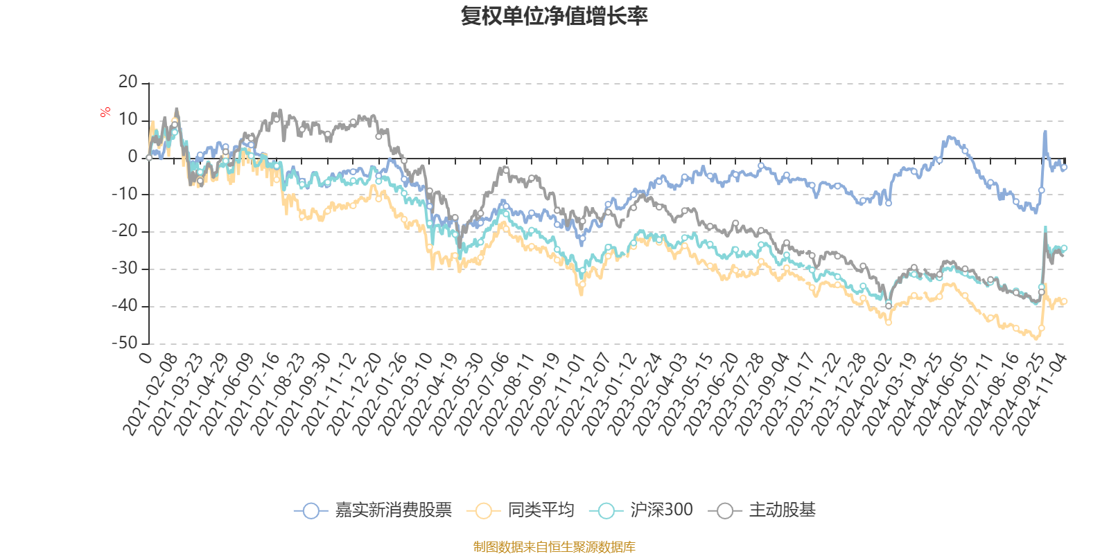 截至11月4日,嘉实新消费股票近三个月复权单位净值增长率为8.22%,位于同类可比基金36/46;近半年复权单位净值增长率为-4.87%,位于同类可比基金23/46;近一年复权单位净值增长率为4.32%,位于同类可比基金5/45;近三年复权单位净值增长率为0.90%,位于同类可比基金1/42。
