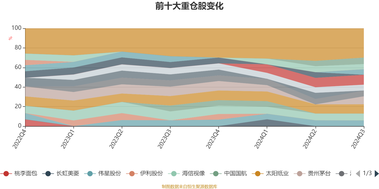 该基金持股集中度较高,近2年前十大重仓股集中度长期超过60%。截至2024年三季度末,基金十大重仓股分别是格力电器、太阳纸业、贵州茅台、海信视像、安井食品、周大生、海信家电、伟星股份、常熟银行、新经典。
