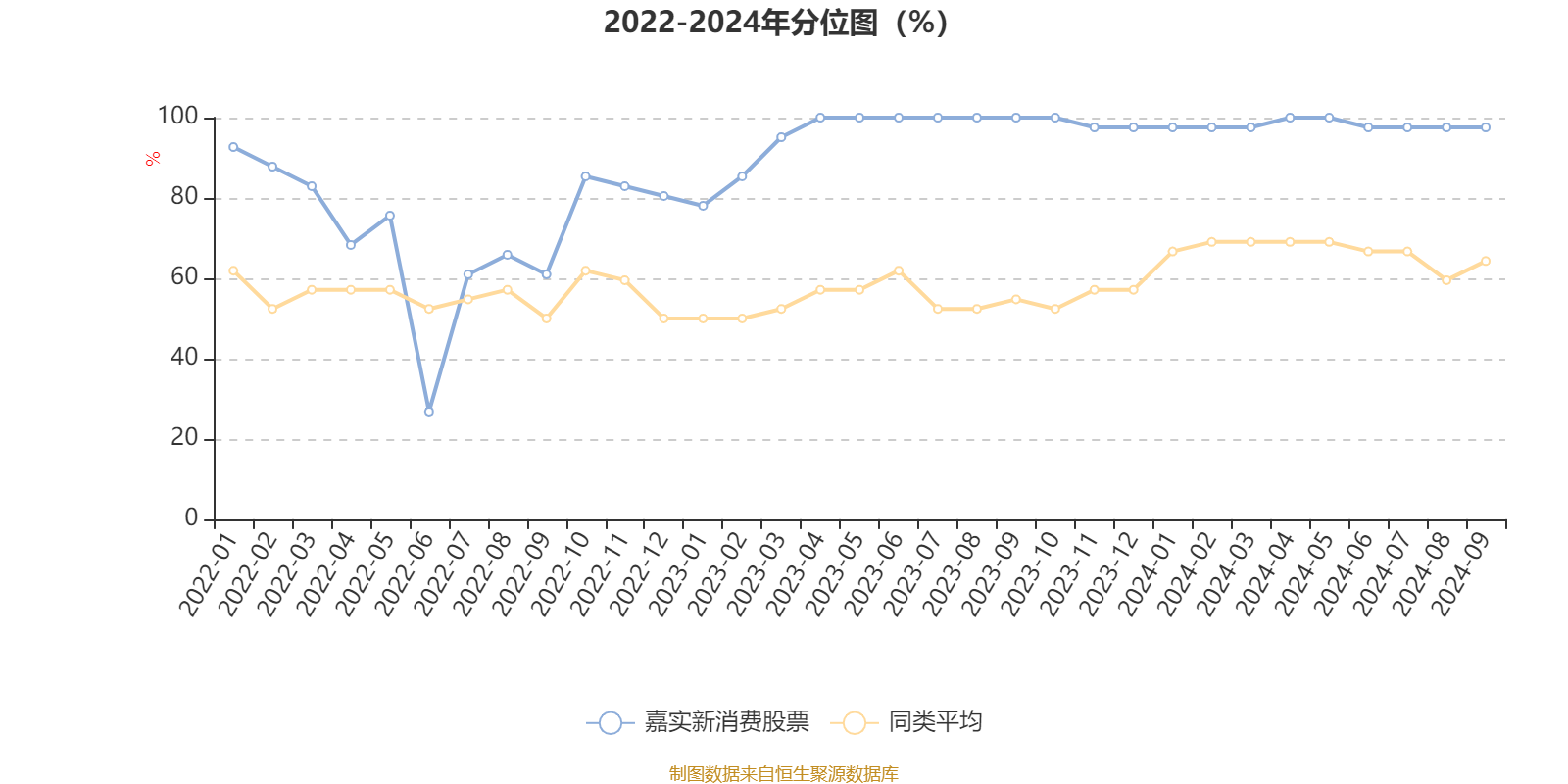 通过所选区间该基金净值增长率分位图,可以观察该基金与同类基金业绩比较情况。图为坐标原点到区间内某时点的净值增长率在同类基金中的分位数。