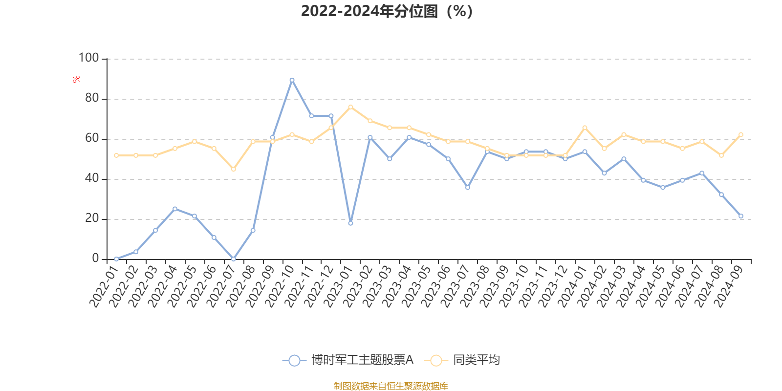 通过所选区间该基金净值增长率分位图,可以观察该基金与同类基金业绩比较情况。图为坐标原点到区间内某时点的净值增长率在同类基金中的分位数。