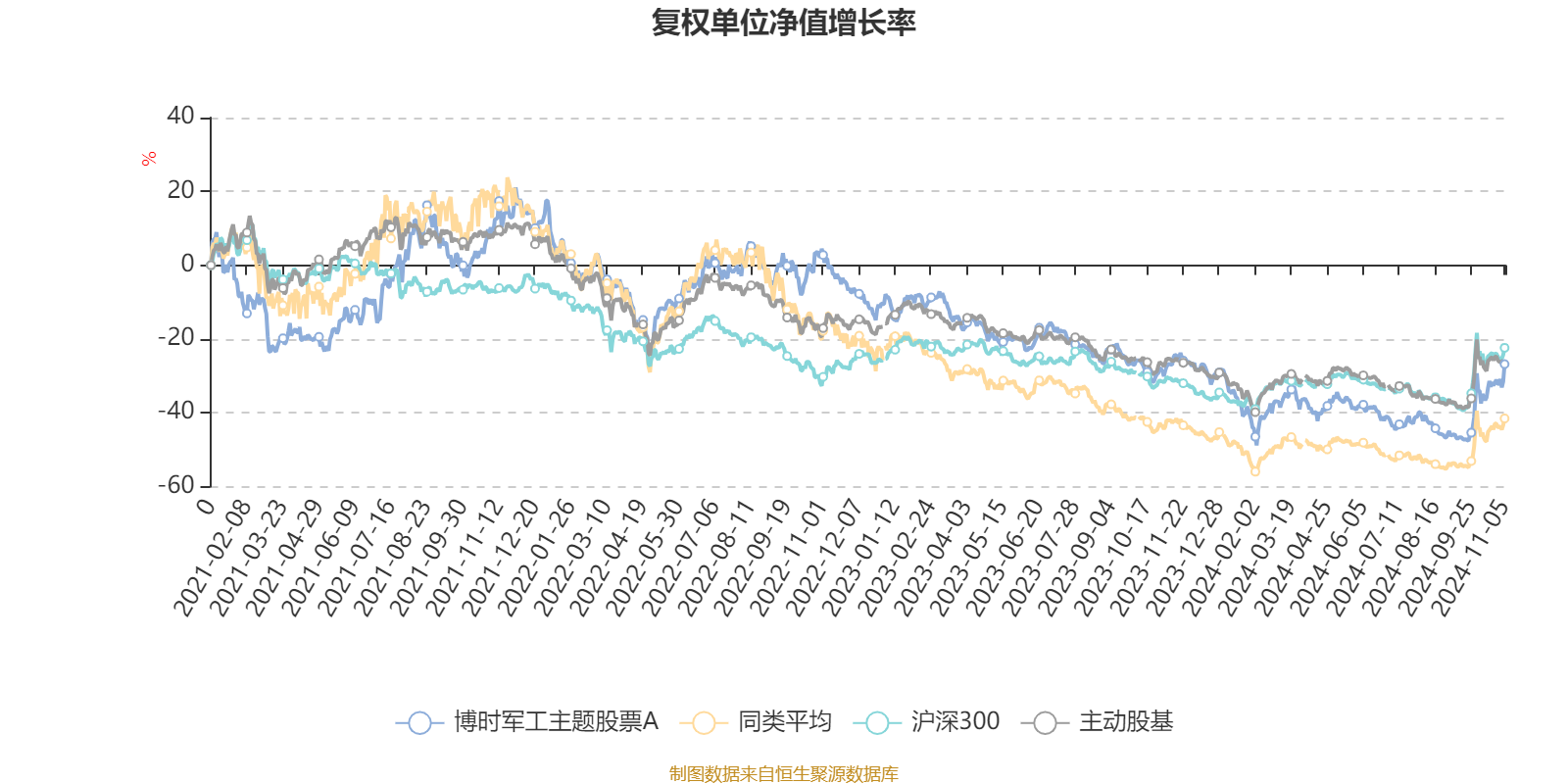 截至11月5日,博时军工主题股票A近三个月复权单位净值增长率为26.60%,位于同类可比基金23/42;近半年复权单位净值增长率为16.56%,位于同类可比基金16/42;近一年复权单位净值增长率为2.48%,位于同类可比基金27/40;近三年复权单位净值增长率为-32.13%,位于同类可比基金8/28。