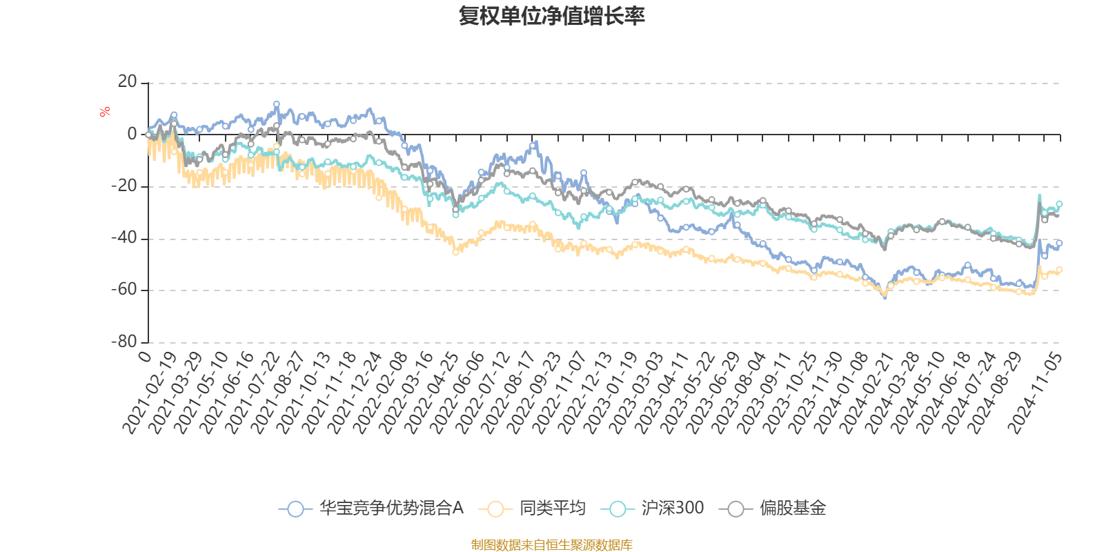 截至11月5日,华宝竞争优势混合A近三个月复权单位净值增长率为38.61%,位于同类可比基金31/645;近半年复权单位净值增长率为24.03%,位于同类可比基金29/644;近一年复权单位净值增长率为16.80%,位于同类可比基金68/622;近三年复权单位净值增长率为-43.49%,位于同类可比基金359/393。