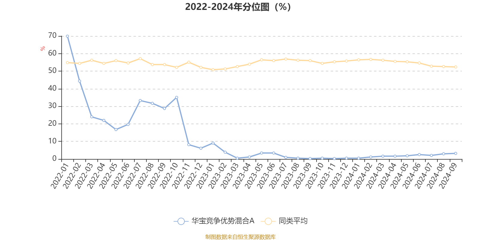通过所选区间该基金净值增长率分位图,可以观察该基金与同类基金业绩比较情况。图为坐标原点到区间内某时点的净值增长率在同类基金中的分位数。