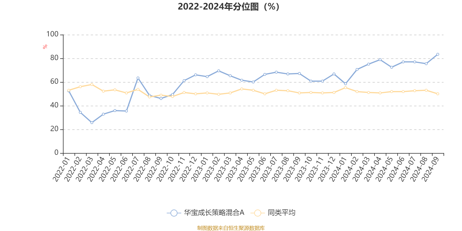 通过所选区间该基金净值增长率分位图,可以观察该基金与同类基金业绩比较情况。图为坐标原点到区间内某时点的净值增长率在同类基金中的分位数。