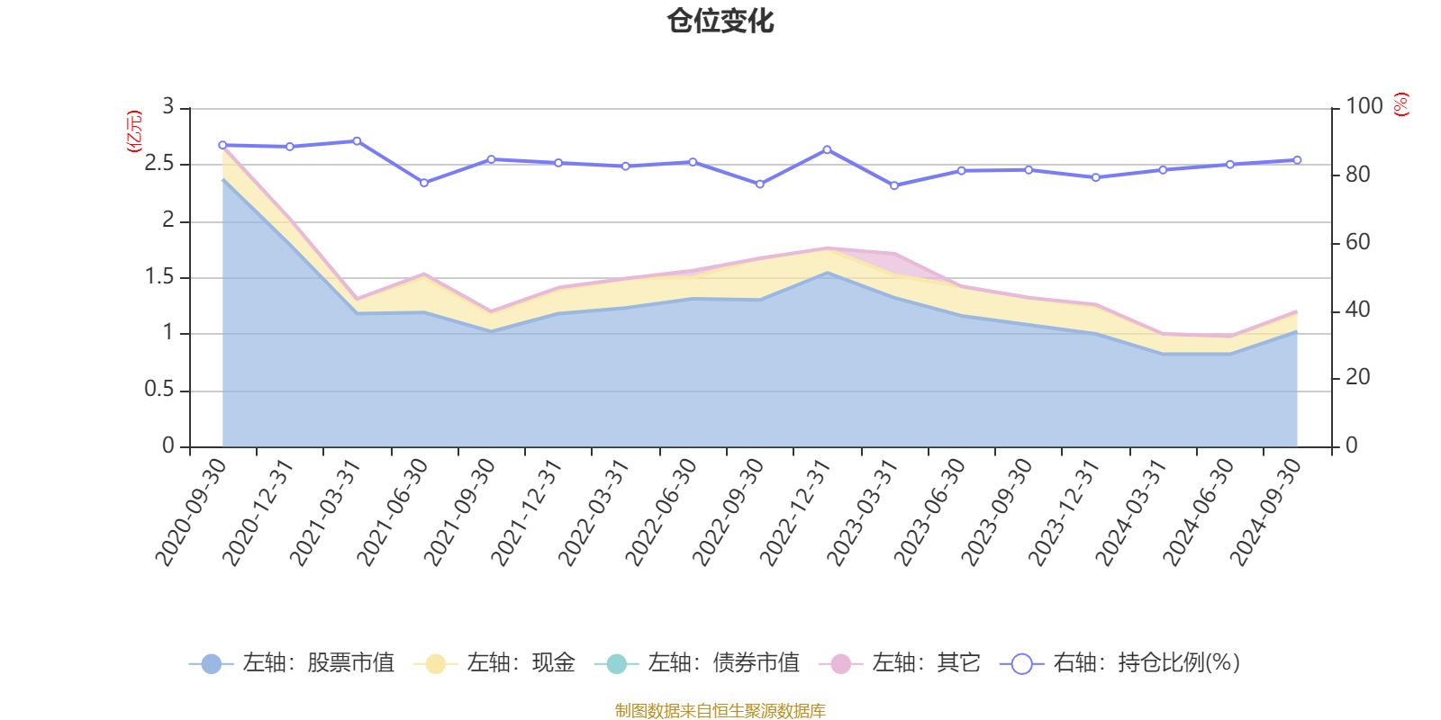据定期报告数据统计,近三年平均股票仓位为82.12%,同类平均为83.36%。2021年一季度末基金达到90.27%的最高仓位,2023年一季度末最低,为77.09%。