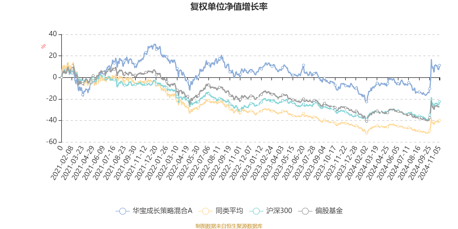 截至11月5日,华宝成长策略混合A近三个月复权单位净值增长率为30.75%,位于同类可比基金68/536;近半年复权单位净值增长率为13.81%,位于同类可比基金124/535;近一年复权单位净值增长率为22.04%,位于同类可比基金30/471;近三年复权单位净值增长率为-6.12%,位于同类可比基金18/242。