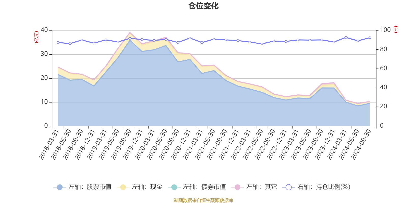 据定期报告数据统计,近三年平均股票仓位为89.4%,同类平均为88.15%。2024年一季度末基金达到92.7%的最高仓位,2022年上半年末最低,为85.96%。