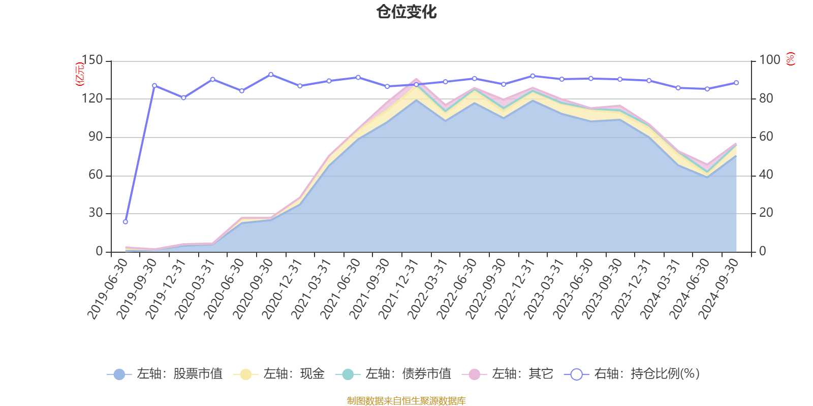 据定期报告数据统计,近三年平均股票仓位为89.04%,同类平均为87.97%。2020年三季度末基金达到92.87%的最高仓位,2019年上半年末最低,为15.8%。