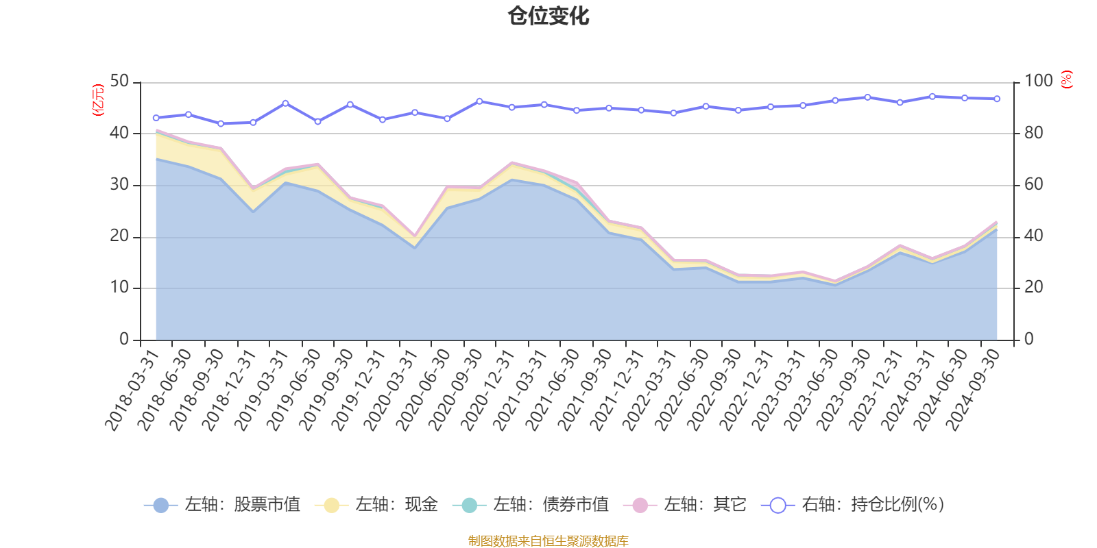 据定期报告数据统计,近三年平均股票仓位为91.64%,同类平均为88.66%。2024年一季度末基金达到94.48%的最高仓位,2018年三季度末最低,为83.93%。