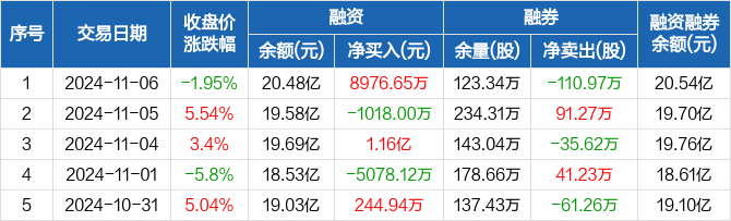 2024年11月6日国海证券融资余额20.48亿元,创近一年新高