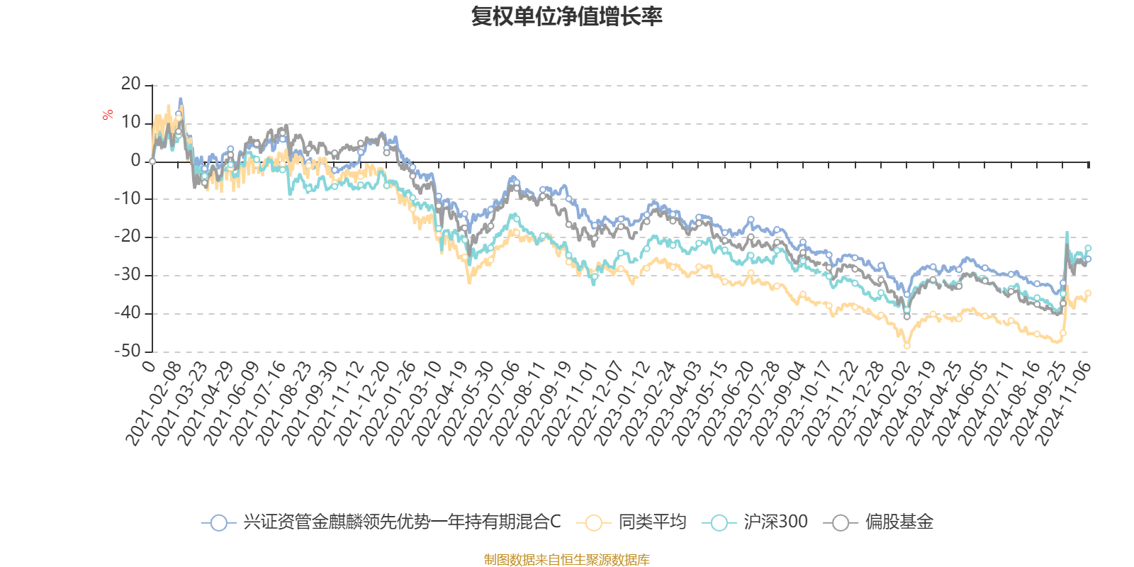 截至11月6日,兴证资管金麒麟领先优势一年持有期混合C近三个月复权单位净值增长率为9.17%,位于同类可比基金233/287;近半年复权单位净值增长率为0.25%,位于同类可比基金210/287;近一年复权单位净值增长率为-1.15%,位于同类可比基金188/287;近三年复权单位净值增长率为-24.97%,位于同类可比基金83/193。